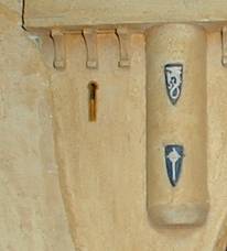 Des bas reliefs ornent le mur