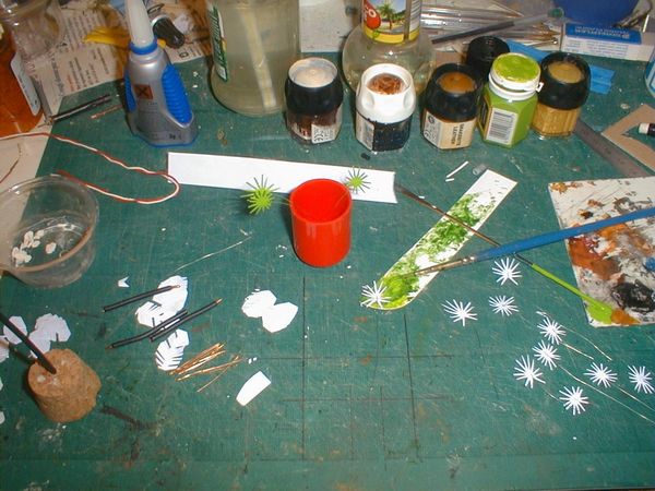 Le tronc du palmier, pour le moment fixé sur un bouchon.