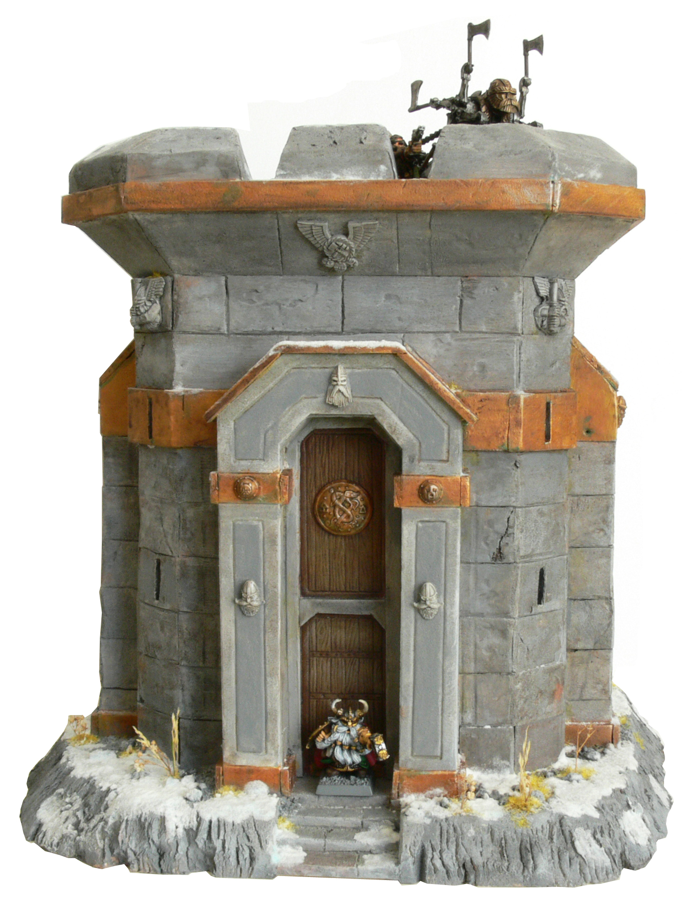 Voici une tour que j'ai réalisé à base de polystyrène extrudé pour les murs. Les parties en métal et en bois sont faites en Dépron.