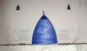 de cheval et les bas reliefs. La forme en arc brisé de la porte et des